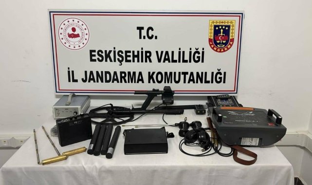 ESKİŞEHİR'de define bulma amacıyla kaçak kazı yapan 4 şüpheli jandarma ekiplerince suçüstü yakalanarak gözaltına alındı.İl Jandarma Komutanlığı ekipleri, Beylikova ilçesinde kaçak kazı yapıldığı bilgisi üzerine harekete geçti. Bölgede yapılan araştırmada 4 şüpheli define bulma amacıyla kaçak kazı yaparken suçüstü yakalandı. Sağlı kontrolünden geçirilen 4 gözaltına alınarak ifadeleri için Jandarma Karakolu'na götürüldü. Şüphelierle birlikte kaçak kazı bölgesinde görüntüleme cihazı, dedektör, 2 adet sismik görüntüleme cihazı, 2 adet metal arama çubuğu ve görüntüleme ekranı, 4 adet alan tarama çubuğu ve 2 adet bakır metal arama çubuğu ele geçirildi. Soruşturma sürüyor.