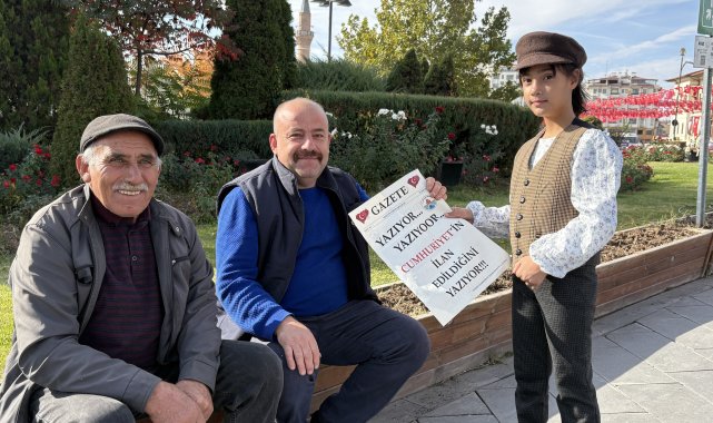 Hüsnü Ümit AVCI-Uğur YİĞİT/SİVAS, (DHA)- SİVAS'ta ilkokul öğrencileri, 102'nci yıl etkinlikleri kapsamında Cumhuriyet'in ilan edildiğini duyuran gazete hazırlayıp, 'Yazıyor, Cumhuriyet'in ilan edildiğini yazıyor' sloganı ile vatandaşlara dağıttı