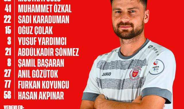 Orta sahada ise Yusuf Yardımcı, Abdülkadir Sönmez, Şamil Başaran, Anıl Gözütok, Furkan Koyuncu ve Hasan Akpınar görev yapacak.