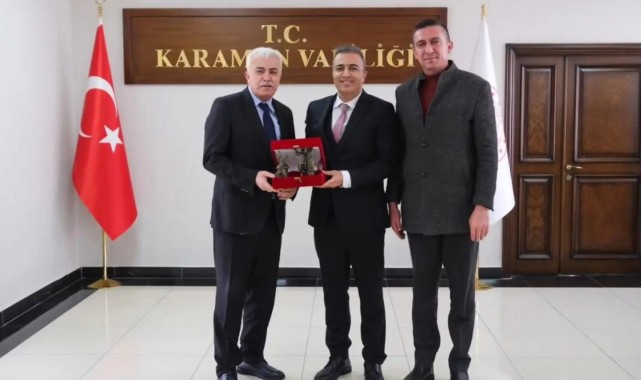 Karaman'a yeni atanan Valisi Hayrettin Çiçek, makamında Hollanda Karamanlılar Federasyonu (HOKAF) Başkanı Zekeriya Arslan ve Kılbasan köyü muhtarı İsmail Ceylan'ı ağırladı. Ziyarette, Vali Çiçek'e yeni görevinde başarı dilekleri iletilirken, iki önemli etkinlik için Hollanda'ya davet yapıldı.HOKAF Başkanı Zekeriya Arslan ve Kılbasan köyü muhtarı İsmail Ceylan, Vali Hayrettin Çiçek'i ziyaret ederek nezaket gösterdiler. Ziyaret kapsamında, bu yıl 24-25-26-27 Temmuz tarihlerinde Karaman Kılbasan köyünde ikincisi düzenlenecek olan "Gurbetten Sılaya" yaz festivaline ve 1-2 Mayıs 2026 tarihlerinde Hollanda'da düzenlenecek "HOKAF'ın 30. yıl Kutlamaları"na katılımları için Vali Çiçek'e davetiyeler sunuldu.Vali Hayrettin Çiçek, nazik davetler karşısında duyduğu memnuniyeti dile getirerek teşekkürlerini iletti. Oldukça samimi ve olumlu bir atmosferde gerçekleşen görüşmenin sonunda Vali Çiçek, ziyaretlerinden dolayı HOKAF Başkanı Zekeriya Arslan ve Kılbasan köyü muhtarı İsmail Ceylan'a teşekkürlerini sundu.Editör: Haber Merkezi