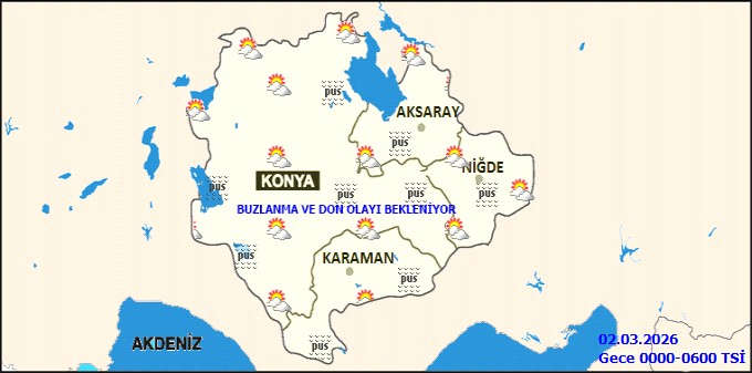 Meteoroloji Genel Müdürlüğü, Karaman'da 1 Mart Pazar günü sabah ve gece saatlerinde pus, buzlanma ve don olayı beklendiğini duyurdu. Hava sıcaklıklarında önemli bir değişiklik öngörülmüyor.