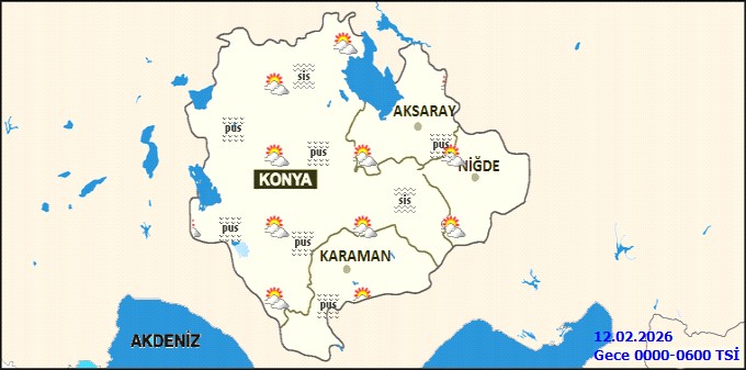 Bölge genelinde hava parçalı ve çok bulutlu bir seyir izleyecek. Sabah saatlerinde Konya'nın batı kesimleri ile Aksaray ve Niğde çevrelerinde hafif yağışlar görülebileceği tahmin ediliyor. Ayrıca, sabah ve gece saatlerinde pus ve yer yer sis hadisesi yaşanması bekleniyor. Hava sıcaklıklarının mevsim normallerinin üzerinde seyretmeye devam edeceği öngörülüyor. Rüzgarın ise genellikle güney ve batı yönlerden hafif, zaman zaman orta kuvvette esmesi bekleniyor.
