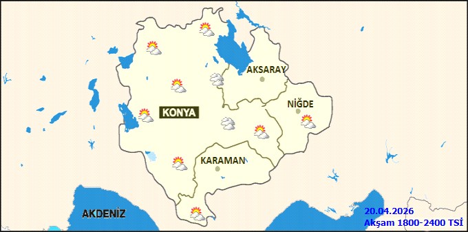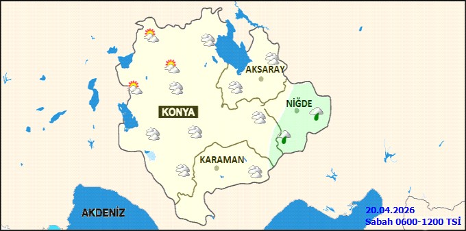 Genel meteorolojik görünüme göre, bölge genelinde Konya'nın kuzeybatısı hariç aralıklı yağmur ve sağanak yağışlar öngörülüyor. Yüksek kesimlerde ise karla karışık yağmur ve yer yer kar yağışı görülebilir. Hava sıcaklığının mevsim normallerinin altında seyretmesi bekleniyor.