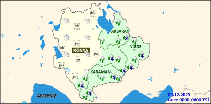 - 09 Aralık Salı: Yağmurlu, 4°C - 8°C