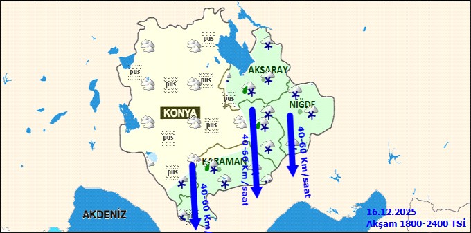 Bölge genelinde hava sıcaklıklarında önemli bir değişiklik beklenmezken, Konya'nın güneydoğusu ile Aksaray, Karaman ve Niğde çevrelerinde gece saatlerine kadar karla karışık yağmur ve kar yağışının sürmesi muhtemeldir. Rüzgarın kuzeyli yönlerden hafif, ara sıra orta kuvvette esmesi, bölgenin güney kesimlerinde ise yer yer kuvvetli (40-60 km/saat) esmesi tahmin ediliyor.Karaman Merkez 5 Günlük Hava Tahmini