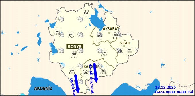 Meteoroloji Genel Müdürlüğü Karaman Hava Durumu biriminden alınan verilere göre, 17 Aralık Çarşamba günü il genelinde hava parçalı ve çok bulutlu olacak. Gün boyunca aralıklı olarak karla karışık yağmur ve kar yağışı bekleniyor.Gün içerisindeki en düşük sıcaklığın -1°C, en yüksek sıcaklığın ise 5°C olarak kaydedilmesi öngörülüyor. Vatandaşların özellikle gece ve sabah saatlerinde dikkatli olması gerektiği belirtildi. MGM Karaman Hava Durumu, gece ve sabah saatlerinde buzlanma ve don olayının yanı sıra yer yer pus ve sisin görülebileceği konusunda uyarıda bulundu.Bölgesel Tahminler ve Rüzgar Durumu