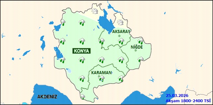 Karaman'da bugün (25 Mart Çarşamba) hava parçalı ve çok bulutlu olacak. Gün içinde aralıklı olarak yağmur ve sağanak, yer yer ise gök gürültülü sağanak yağışlar öngörülüyor. ?️ Günün en düşük sıcaklığı 3°C, en yüksek sıcaklığı ise 13°C civarında seyredecek. ?️