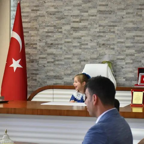 Karaman Milli Eğitim Müdürlüğü'nde 23 Nisan Ulusal Egemenlik ve Çocuk Bayramı dolayısıyla anlamlı bir tören düzenlendi. Tören kapsamında, minik öğrenciler temsili olarak müdürlük makamına oturdu.Melek Hatun Anaokulu'ndan katılan 5 yaşındaki Hafsa Nil Öksüz ve 5 yaşındaki Ali Asaf Bilekyiğit, İl Milli Eğitim Müdürü Mehmet Çalışkan'ın koltuğuna oturarak bayram sevincini doyasıya yaşadı. Bu özel gün, çocukların geleceğe dair umutlarını ve bayramın coşkusunu yansıttı.