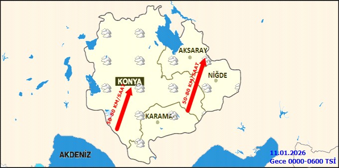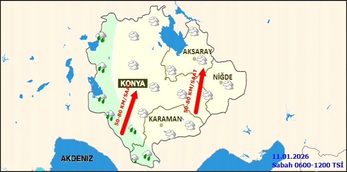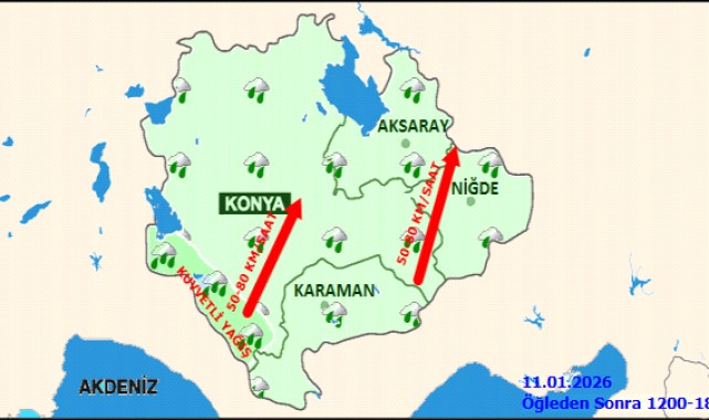 Meteoroloji Genel Müdürlüğü (MGM) Karaman Hava Durumu, 11 Ocak Pazar günü için ilde beklenen kuvvetli hava koşulları hakkında detaylı tahminleri paylaştı.