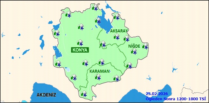 Karaman'da bugün, 25 Şubat Çarşamba günü, hava parçalı ve çok bulutlu olacak. Gün içinde aralıklı yağmur görülecek, öğleden sonra ise karla karışık yağmur ve yer yer kar yağışı bekleniyor. ?️❄️ En düşük sıcaklık 1°C, en yüksek sıcaklık ise 12°C civarında seyredecek.Bölge genelinde de parçalı ve çok bulutlu bir havanın hakim olması, aralıklı yağmur geçişlerinin yaşanması öngörülüyor. Zamanla karla karışık yağmur ve yer yer kar yağışının da etkili olması tahmin ediliyor. Hava sıcaklığının ise 2 ila 6 derece arasında azalması bekleniyor. ?️ Rüzgarın genellikle güneyli ve batılı yönlerden eseceği, öğleden sonra kuzeyli yönlerden hafif, ara sıra orta kuvvette ve yer yer kuvvetlice esebileceği belirtildi. ?️