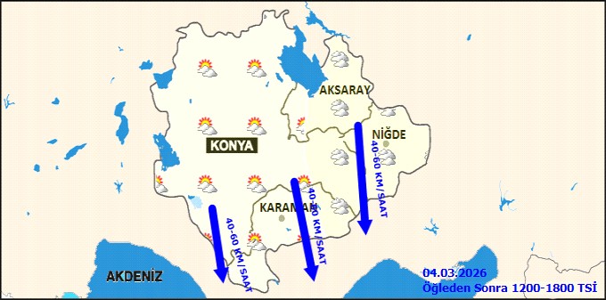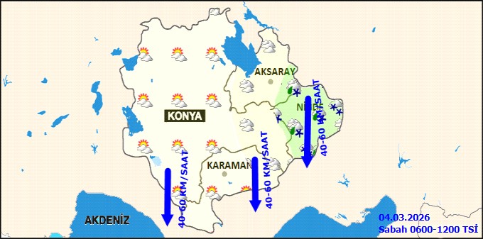 Karaman'da bugün, 4 Mart 2026 Çarşamba günü, hava çok bulutlu olacak. Gün içinde en düşük sıcaklık -1 dereceye kadar düşerken, en yüksek sıcaklığın 9 dereceyi bulması bekleniyor. Sabah ve gece saatlerinde buzlanma ve don olayı görülebilir.Bölge genelinde parçalı bulutlu bir havanın hakim olması öngörülürken, doğu kesimlerinde çok bulutlu bir gökyüzü tahmin ediliyor. Akşam saatlerine kadar Niğde çevresinde karla karışık yağmur ve yer yer kar yağışı görülebilir. Hava sıcaklıklarının mevsim normalleri civarında seyretmesi bekleniyor. Rüzgarın ise genellikle kuzeyli yönlerden orta kuvvette, zaman zaman 40-60 km/saat hızla kuvvetli esmesi öngörülüyor.
