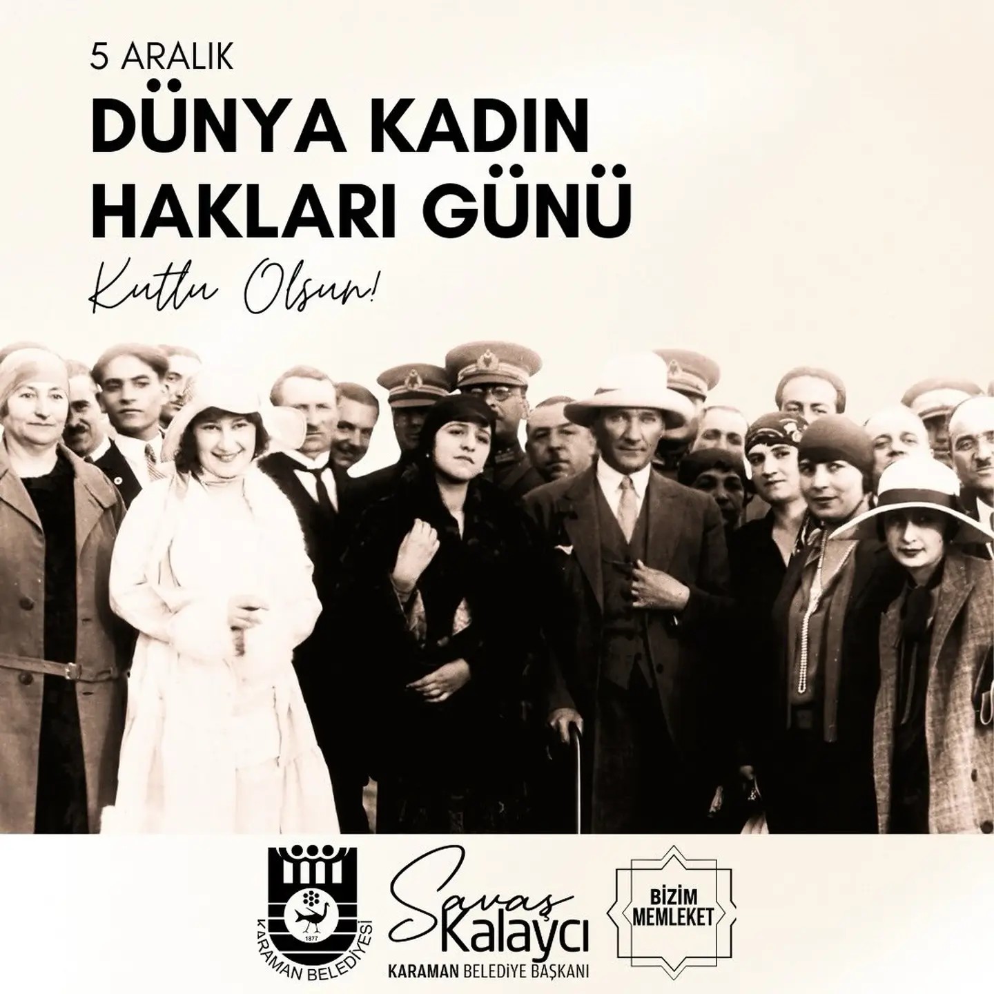 Karaman Belediyesi, 5 Aralık Dünya Kadın Hakları Günü ve Türk kadınına seçme ve seçilme hakkının verilmesini kutladı. Yapılan paylaşımda, bu önemli günün anlamı ve kadınların toplumsal hayattaki yeri vurgulandı.Belediyeden yapılan açıklamada, 'Türk Kadınına Seçme ve Seçilme Hakkının Verilmesi ve Dünya Kadın Hakları Günü Kutlu Olsun' ifadeleri kullanılarak, tüm kadınların bu özel gününü tebrik edildi.Editör: Haber MerkeziKaynak: Sosyal Medya
