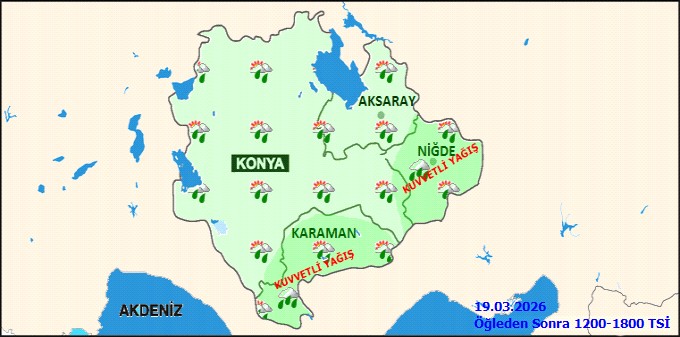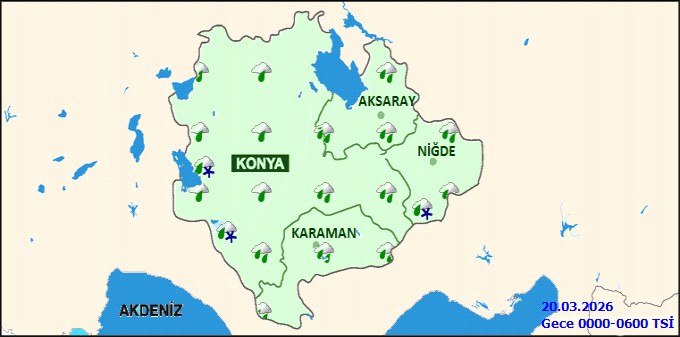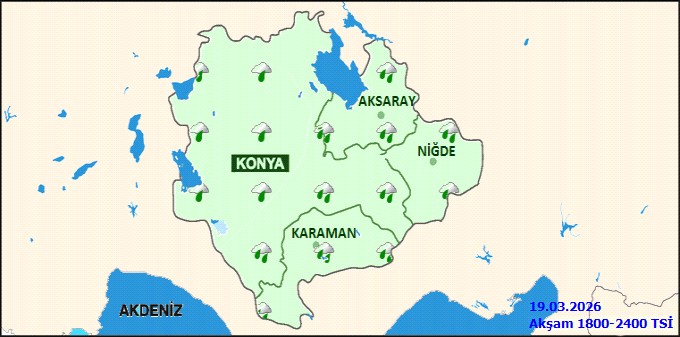 Karaman il genelinde 19 Mart Perşembe günü parçalı ve çok bulutlu bir hava hakim olacak. Yer yer kuvvetli olması beklenen aralıklı yağmur ve sağanak yağışların yanı sıra, yüksek kesimlerde karla karışık yağmur ve kar yağışı görülebilir. Günün en düşük sıcaklığı 7°C, en yüksek sıcaklığı ise 8°C olarak ölçülecek.Bölge genelinde etkili olması beklenen yağışların özellikle Niğde ve Karaman çevrelerinde yer yer kuvvetli (21-50 kg/m²) olması öngörülüyor. Hava sıcaklıklarının mevsim normalleri civarında seyredeceği tahmin edilirken, rüzgarın genellikle kuzeyli yönlerden hafif, ara sıra orta kuvvette esmesi bekleniyor.