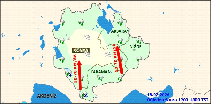 Karaman'da bugün, 18 Şubat Çarşamba, kuvvetli yağmur ve şiddetli rüzgar bekleniyor. Meteoroloji Genel Müdürlüğü'nden yapılan açıklamaya göre, kentte sıcaklıklar 7 ila 11 derece arasında seyredecek. Bölge genelinde parçalı ve çok bulutlu bir hava hakim olacak, aralıklı yağmur ve sağanak geçişleri görülecek. Yüksek kesimlerde ise karla karışık yağmur ve kar yağışı tahmin ediliyor. Sabah saatlerinde yağışların yerel olarak kuvvetli olabileceği belirtildi.Hava sıcaklıklarının mevsim normallerinin üzerinde seyretmeye devam edeceği öngörülüyor. Rüzgarın ise güneyli yönlerden orta kuvvette eseceği, yer yer 50-70 km/saat, hatta 80 km/saat'e ulaşan fırtına şeklinde etkili olabileceği ifade edildi. Akşam saatlerinden itibaren rüzgarın kuzeyli ve batılı yönlerden orta kuvvette esmesi bekleniyor.