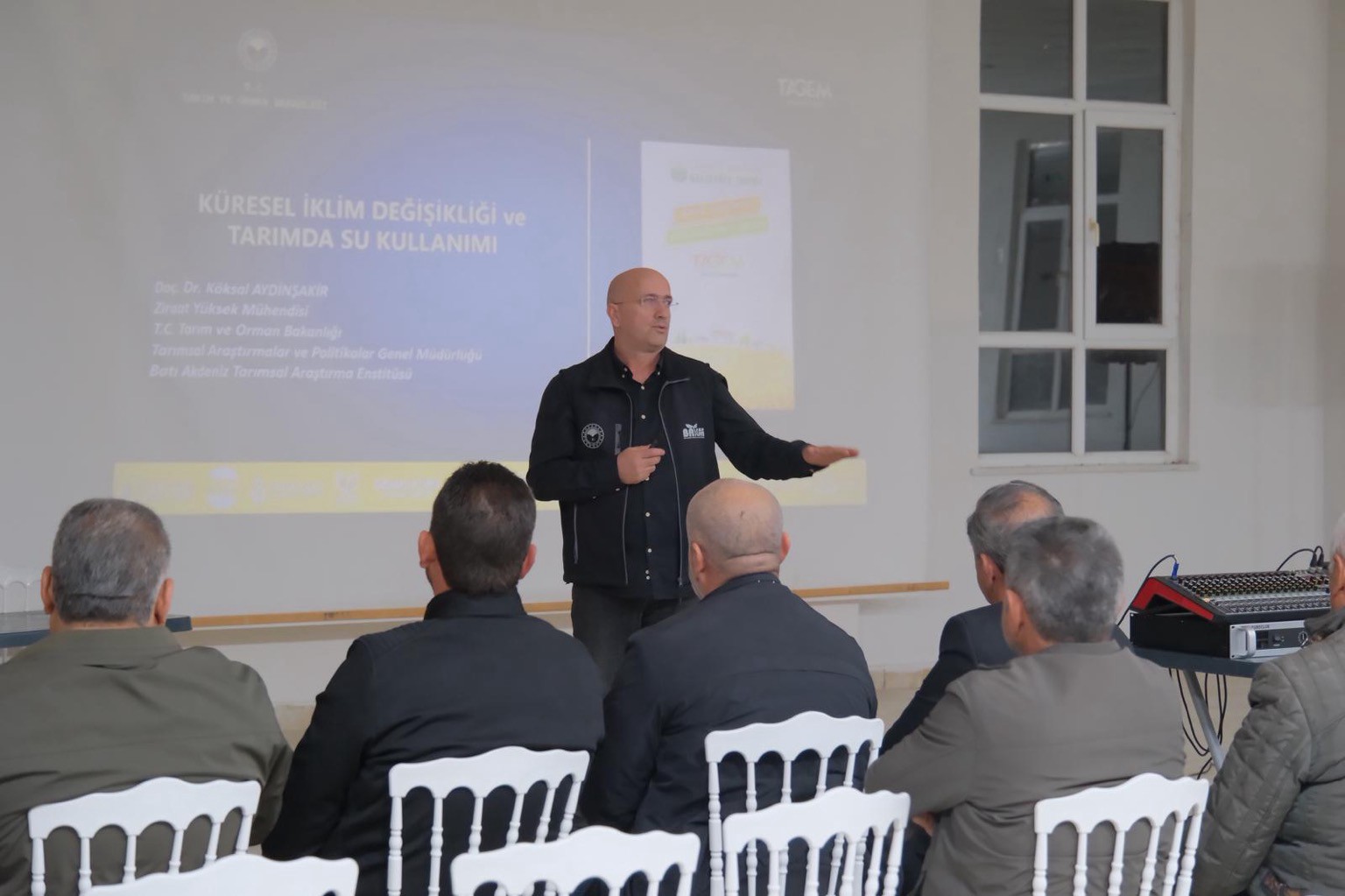 Toplantıda İl Müdürü Hatice BULUT, Çiftçi Kayıt Sistemi (ÇKS) ve tarım sigortaları gibi önemli konular hakkında üreticilere kapsamlı bilgiler aktardı. Ayrıca, il genelinde yürütülen güncel tarım çalışmaları hakkında detaylar paylaşıldı. Şube Müdürü Ömer KOKA ise bitkisel üretim planlaması, münavebeli ekim yöntemleri ve yeni destekleme modelleri üzerine değerlendirmelerde bulundu.Antalya BATEM'den Doç. Dr. Köksal AYDINŞAKİR'in katılımıyla iklim değişikliği, artan kuraklık eğilimi ve doğru sulama tekniklerinin ürün verimliliğine olan etkileri üzerine de önemli sunumlar yapıldı. Bu sunumlar, üreticilere geleceğe yönelik tarımsal stratejiler geliştirme konusunda ışık tuttu.Karaman İl Tarım ve Orman Müdürlüğü, Sudurağı köyü sakinlerine gösterdikleri ilgi, samimiyet ve misafirperverlik için köy muhtarlarına ve tüm üreticilere teşekkürlerini iletti.Editör: Haber MerkeziKaynak: Sosyal Medya