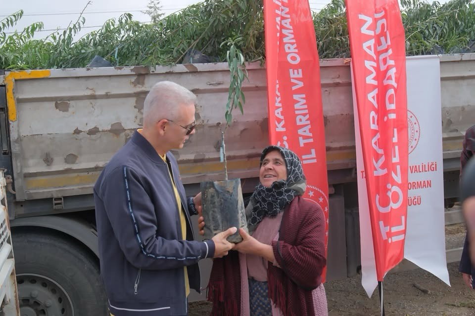Karaman İl Tarım ve Orman Müdürlüğü ile İl Özel İdaresi'nin ortaklaşa yürüttüğü proje kapsamında, üreticilere yönelik yüzde 75 hibeli fidan dağıtımı gerçekleştirildi.