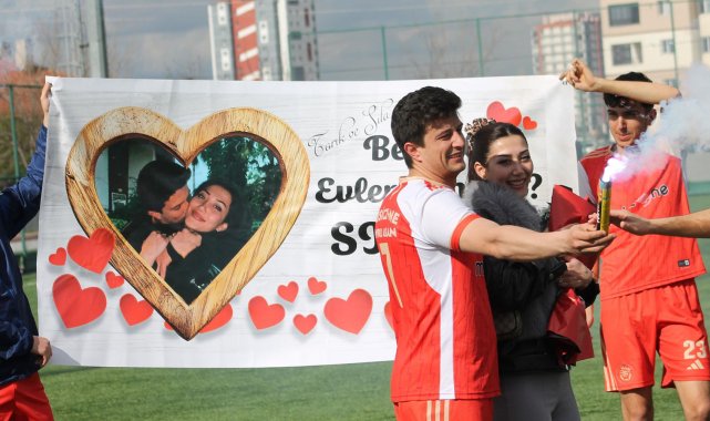 – KAYSERİ'de oynanan İkinci Amatör Küme maçında Yavru Aslanspor takımından Tarık Tiryaki (29), sevgilisi Sıla Arıkan'a (26) evlilik teklif etti.