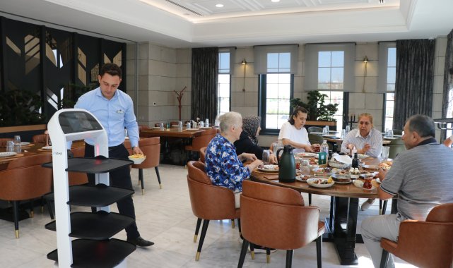 KAYSERİ'de Recep Tayyip Erdoğan Millet Bahçesi'nde, Büyükşehir Belediyesi tarafından hizmet veren Mutfak Sanatları Merkezi'nde, kent mutfağına ait yöresel ürünler 'MSM' isimli robot tarafından müşterilere servis ediliyor. Tesis müdürü İsmail Furkan Olgun, "Şu ana kadar çok olumlu tepkiler aldık. Hatta sadece robot için gelen misafirlerimiz bile var. Özellikle çocuk misafirlerimiz robot için buraya gelmek istiyor. Robotla arkadaş oldular. Çok güzel ve olumlu geri dönüşler alıyoruz" dedi.Çevre, Şehircilik ve İklim Değişikliği Bakanlığı'nın koordinasyonunda Toplu Konut İdaresi (TOKİ) Başkanlığı tarafından yaptırılan ve 1 milyon 260 bin metrekare alanı ile Türkiye'nin en büyük millet bahçelerinden biri olan Kayseri Recep Tayyip Erdoğan Millet Bahçesi'nde, Büyükşehir Belediyesi bünyesinde faaliyet gösteren ve kentin yöresel lezzetlerinin bulunduğu Mutfak Sanatları Merkezi'nde 'MSM' isimli robot, işletmedeki garsonlara yardım ediyor. Özel yazılım sayesinde kendine tanımlanan harita ve masa bilgisiyle Kayseri'ye özgü yöresel lezzetlerin yapıldığı mutfaktan aldığı yemek ve tatlıları masalara taşıyor. Ürünleri masaya bırakan robot, daha sonra da "Siparişinizi getirdim. Afiyet olsun" diyor. 'MSM' isimli robot, müşterilerin ve çocuklarının dikkatini çekerken, ayrıca merkezde doğum günü sürprizi yapmak isteyenlere de kendisine tanımlanan isimlere göre doğum günü kutlaması yapıyor.'GARSON ARKADAŞLARIMIZA YARDIMCI OLUYOR'Kayseri Büyükşehir Belediyesi Mutfak Sanatları Merkezi Müdürü İsmail Furkan Olgun, "3 hafta önce bu robotu hizmete aldık. Sosyal medyada böyle bir robot olduğunu gördük. Farklı bir hizmet vermek istedik. Yeniliğe açık bir tesis olmasını istedik. Çocukların da dikkatini çekeceğini düşündüğümüz için böyle bir robotu kazandırdık. Verilen komut sayesinde masalara yemekleri ve tatlıları taşıyabilir. Çocukların doğum gününü kutlayabiliyor. Garson arkadaşlarımıza yardımcı oluyor. Servis hizmetini rahatlatıyor. Masalardan servisin toplanmasına yardımcı oluyor" diye konuştu.'ÇOK GÜZEL TEPKİLER ALIYORUZ'Robotla servis yapılmasından dolayı olumlu tepkiler aldıklarını belirten Olgun, "Masaların haritalandırmasını yaptık. Öncelikle işletmemizdeki masaların harita bilgilerini paylaştık. Hangi masaya gideceğini biliyor. Harita yardımıyla masalara servis yapıyor. Şu ana kadar çok olumlu tepkiler aldık. Hatta sadece robot için gelen misafirlerimiz bile var. Özellikle çocuk misafirlerimiz robot için buraya gelmek istiyor. Robotla arkadaş oldular. Çok güzel ve olumlu geri dönüşler alıyoruz" dedi.