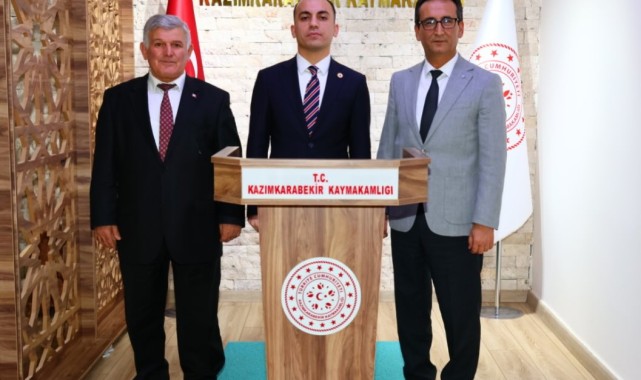 Karaman İl Millî Eğitim Müdürü Mehmet Çalışkan ve Eğitim Müfettişleri Başkanı Ercan Uçar, yeni görevine başlayan Kazımkarabekir Kaymakamı Mücahit Zıvlak'a nezaket ziyaretinde bulundu.Kazımkarabekir Kaymakamlığı tarafından yapılan açıklamada, Karaman İl Millî Eğitim Müdürü Mehmet Çalışkan ve Eğitim Müfettişleri Başkanı Ercan Uçar'ın, Kaymakam Mücahit Zıvlak’a hayırlı olsun ziyaretini gerçekleştirdiği belirtildi.Editör: Haber MerkeziKaynak: Sosyal Medya