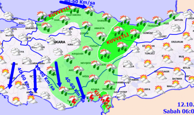 ANKARA, (DHA)- METEOROLOJİ Genel Müdürlüğü, Ordu, Tokat, Sivas, Kahramanmaraş, Osmaniye, Adana'nın doğusu ve Hatay kıyılarında yerel kuvvetli yağışlar beklendiğinden, ulaşımda aksamalar, sel, su baskını, heyelan ve benzeri olumsuzluklara karşı dikkatli ve tedbirli olunması gerektiğini açıkladı