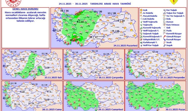 Meteoroloji Genel Müdürlüğü, 24-30 Kasım tarihleri arasındaki haftalık hava tahminini duyurdu. Karaman'da hava sıcaklıklarının hafta ortasına kadar mevsim normallerine düşmesi, sonrasında ise tekrar artması bekleniyor.