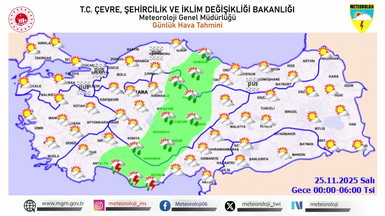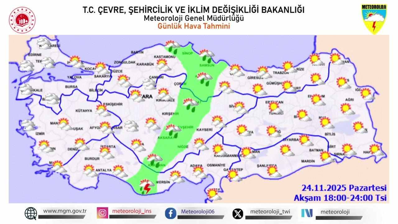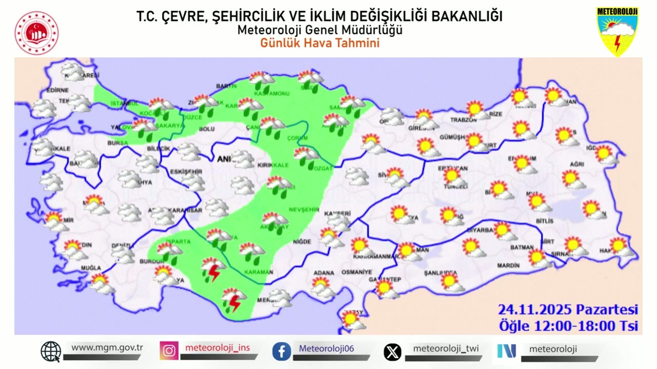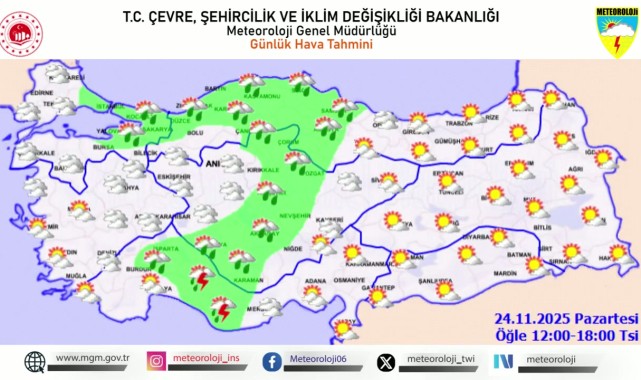 Meteoroloji Genel Müdürlüğü, 24 Kasım 2025 Pazartesi günü için önemli bir hava durumu uyarısı yayımladı. Yapılan son değerlendirmelere göre, ülkenin bazı bölgelerinde kuvvetli yağışların etkili olması bekleniyor.Hava Sıcaklıklarında Değişiklik