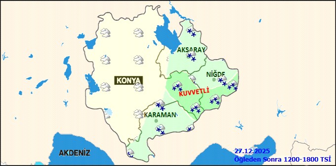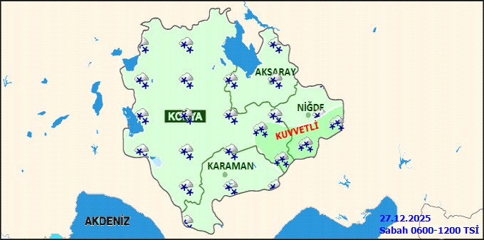 Meteoroloji Genel Müdürlüğü (MGM) Karaman Hava Durumu birimi, 27 Aralık 2025 Cumartesi gününe ait hava durumu raporunu yayımladı.