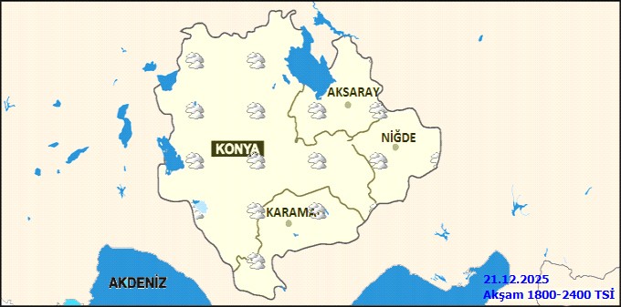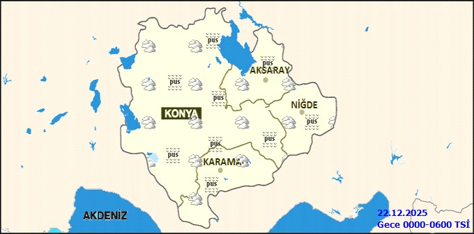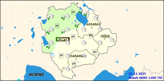 Genel meteorolojik görünüme göre, bölge genelinde parçalı ve çok bulutlu bir hava hakim olacak. Konya'nın batı ve kuzey kesimleri öğle saatlerine kadar aralıklı yağış alacak. Karaman'da sabah ve gece saatlerinde, sürücüler ve vatandaşlar için kritik önem taşıyan buzlanma ve don olayı ile birlikte yer yer pus ve sis görülebileceği tahmin ediliyor. Hava sıcaklıklarında önemli bir değişiklik beklenmezken, rüzgarın kuzey yönlerden hafif ve ara sıra orta kuvvette esmesi öngörülüyor.