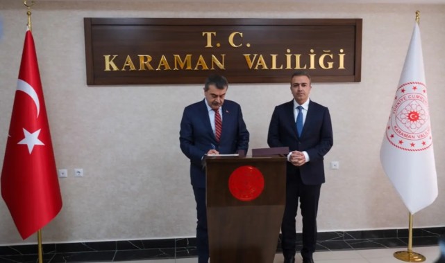 Millî Eğitim Bakanı Prof. Dr. Yusuf Tekin, Karaman'ı ziyaret ederek Valilik makamına geçti. Vali Hayrettin Çiçek tarafından karşılanan Bakan Tekin, Valilik Şeref Defteri'ni imzaladı.