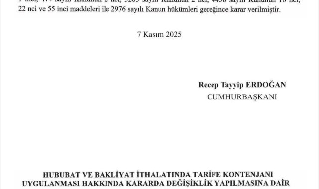- 10 Ekim 2024: 1 milyon ton, vergi muafiyeti süresi: 31 Aralık 2024