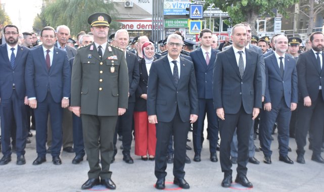 Cumhuriyet Meydanı'nda düzenlenen törende Vali Cahit Çelik, Niğde Belediye Başkanı Emrah Özdemir, Niğde Garnizon Komutanlığı, siyasi partiler ve sivil toplum kuruluşu üyeleri Atatürk Anıtı'na çelenk sundu. Çelenk sunumunun ardından saatler 09.05'i gösterdiğinde sirenler çaldı. Tüm Türkiye'de olduğu gibi kentte de saygı duruşunda 2 dakika hayat durdu. İstiklal Marşı eşliğinde Türk bayrağının göndere çekilmesi ve yarıya indirilmesinin ardından Cumhuriyet Meydanındaki tören son buldu.