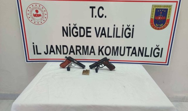 İl Jandarma Komutanlığı ekipleri, Bor ilçesi Bahçeli beldesinde bir evde ruhsatsız silahlar olduğu bilgisine ulaştı. Adrese baskın yapan ekipler, kimliğini belirlediği şüpheliyi gözaltına aldı. Adreste yapılan aramada kurusıkıdan bozma tabanca, kurusıkı tabanca, 2 şarjör ve mühimmat ele geçirildi. Şüpheli hakkında adli işlem başlatıldı.