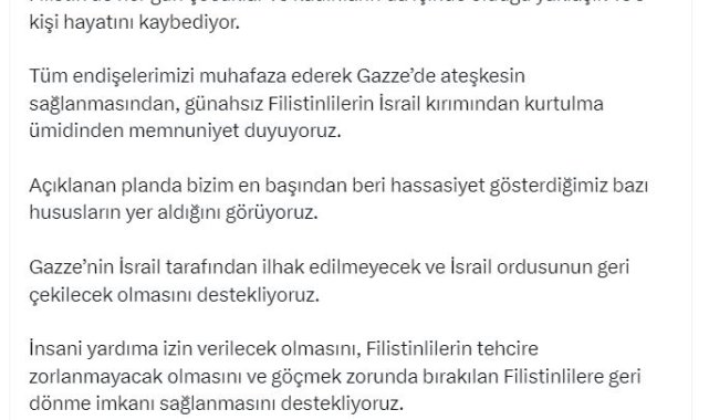 CHP Genel Başkanı Özgür Özel, ABD Başkanı Donald Trump yönetiminin Gazze için hazırladığı barış planına ilişkin, "Türkiye, barışın korunması için sorumluluk almalıdır. Biz ana muhalefet partisi olarak bunu destekleriz. Filistin'de oluşturulacak bir barış gücünün parçası olmak da buna dahildir" dedi.Özgür Özel, sosyal medya hesabından yaptığı açıklamada, "Cumhuriyet Halk Partisi olarak Filistin sorununu, tarihsel bir tutarlılık ve vicdani bir kararlılıkla her zaman sahiplendik. Gazze'deki insanlık dramına en sert tepkiyi gösterdik. Filistin'de her gün çocuklar ve kadınların da içinde olduğu yaklaşık 100 kişi hayatını kaybediyor. Tüm endişelerimizi muhafaza ederek Gazze'de ateşkesin sağlanmasından, günahsız Filistinlilerin İsrail kırımından kurtulma ümidinden memnuniyet duyuyoruz. Açıklanan planda bizim en başından beri hassasiyet gösterdiğimiz bazı hususların yer aldığını görüyoruz. Gazze'nin İsrail tarafından ilhak edilmeyecek ve İsrail ordusunun geri çekilecek olmasını destekliyoruz. İnsani yardıma izin verilecek olmasını, Filistinlilerin tehcire zorlanmayacak olmasını ve göçmek zorunda bırakılan Filistinlilere geri dönme imkanı sağlanmasını destekliyoruz" dedi.'HAMAS'IN KABULÜ ÖNEMLİ'Rehinelerin serbest bırakılmasını da olumlu bulduklarını kaydeden Özgür Özel, "Türkiye, barışın korunması için sorumluluk almalıdır. Biz ana muhalefet partisi olarak bunu destekleriz. Filistin'de oluşturulacak bir barış gücünün parçası olmak da buna dahildir. Hem Hamas'ın hem de Netanyahu kabinesindeki bazı şahin isimlerin plana direnme, süreci zora sokmaya çalışma ihtimali var. Planın hayata geçmesi için Hamas'ın kabulü önemli. Yoksa, çatışmalar tekrar başlayabilir. Süreci dikkatle takip ediyoruz. Tüm bunlarla birlikte, Filistin sorununun çözümü için iki noktanın dikkate alınması gerektiğinin altını çizmeliyiz. Filistin'in geleceğini ilgilendiren her türlü çözüm sürecinde Filistinlilerin yer alması gerekir. Ve bu sürecin, 'İki devletli çözüm' talebine engel olmaması gerekir. Nihai çözümün ancak iki devletli bir yapıyla gerçekleşeceğini tekrar ediyor, bu konudaki Birleşmiş Milletler kararını hatırlatıyoruz. ABD-İngiltere'nin, Filistinlilere sormadan hazırladığı, BM'nin görevini insani yardımların ulaştırılmasına indirgeyen, Gazze'nin başına Irak işgalini desteklemiş Tony Blair'i getirmeyi hedefleyen bu plana ilişkin yaklaşımımızı Aliya İzzetbegoviç'in şu sözleriyle özetleyebilirim: 'Bu adil bir barış değil ama kötü bir barış, süren bir savaştan daha iyidir."