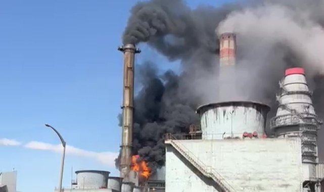Sivas'ta termik santralde baca yangını