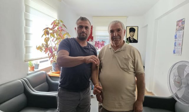 Erkan ALTUNTAŞ / AKSARAY, (DHA)- AKSARAY'ın Ortaköy ilçesinde temizlik görevlisi Fikret Eğritaş'ın bulduğu altın kolyeyi sahibine teslim etti
