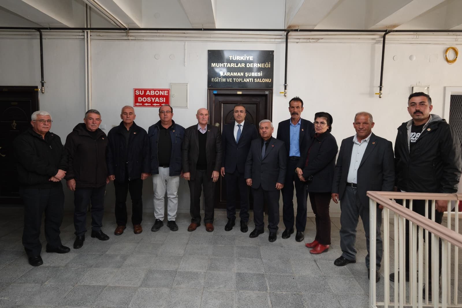 Karaman Valisi Hayrettin Çiçek, Karaman Muhtarlar Derneği'ni ziyaret ederek Dernek Başkanı Ali Öngay ve yönetim kurulu üyeleriyle bir araya geldi. Vali Çiçek'in ziyaretinde duyduğu memnuniyeti dile getiren Dernek Başkanı Ali Öngay, Vali Çiçek'e teşekkürlerini iletti.Ziyarette konuşan Vali Çiçek, muhtarlık müessesesinin demokrasinin temel taşı ve en köklü kurumlarından biri olduğunu vurguladı. Muhtarların devlet ile vatandaş arasında güçlü bir köprü vazifesi gördüğünü belirten Vali Çiçek, yerel yönetim anlayışında muhtarların üstlendiği sorumluluğun büyük önem taşıdığını ifade etti. Vali Çiçek, uyum ve koordinasyon içerisinde çalışarak köylere ve mahallelere devletin imkanlarının ulaştırılmasında muhtarların önemli bir görev üstlendiğini belirtti. Vatandaşların ihtiyaç ve taleplerine doğrudan muhatap olan muhtarların gayretli çalışmalarının büyük önem taşıdığını sözlerine ekledi.