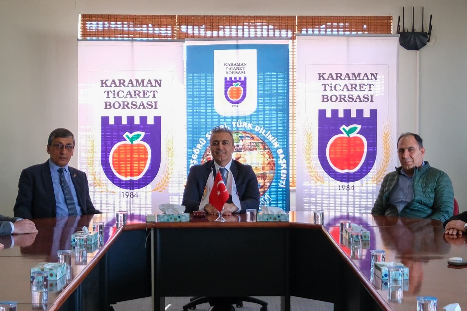 Karaman Valisi Hayrettin Çiçek, Karaman Ticaret Borsası'nı ziyaret ederek Yönetim Kurulu Başkanı Ekrem Çavaş ve borsa yönetimi ile bir araya geldi. Vali Çiçek, ziyaret kapsamında borsanın işleyişi, faaliyetleri ve yürütülen çalışmalar hakkında bilgi aldı.Ziyarette, Karaman'ın ekonomik yapısı, tarım ve hayvancılık sektöründeki gelişmeler ile ticaret hacmine ilişkin değerlendirmeler yapıldı. Ayrıca, sektör temsilcilerinin talep ve beklentileri de Vali Çiçek'e aktarıldı. Yönetim Kurulu Başkanı Ekrem Çavaş ve diğer yetkililer, Vali Çiçek'e nazik ziyaretlerinden dolayı teşekkürlerini iletti.Editör: Haber Merkezi